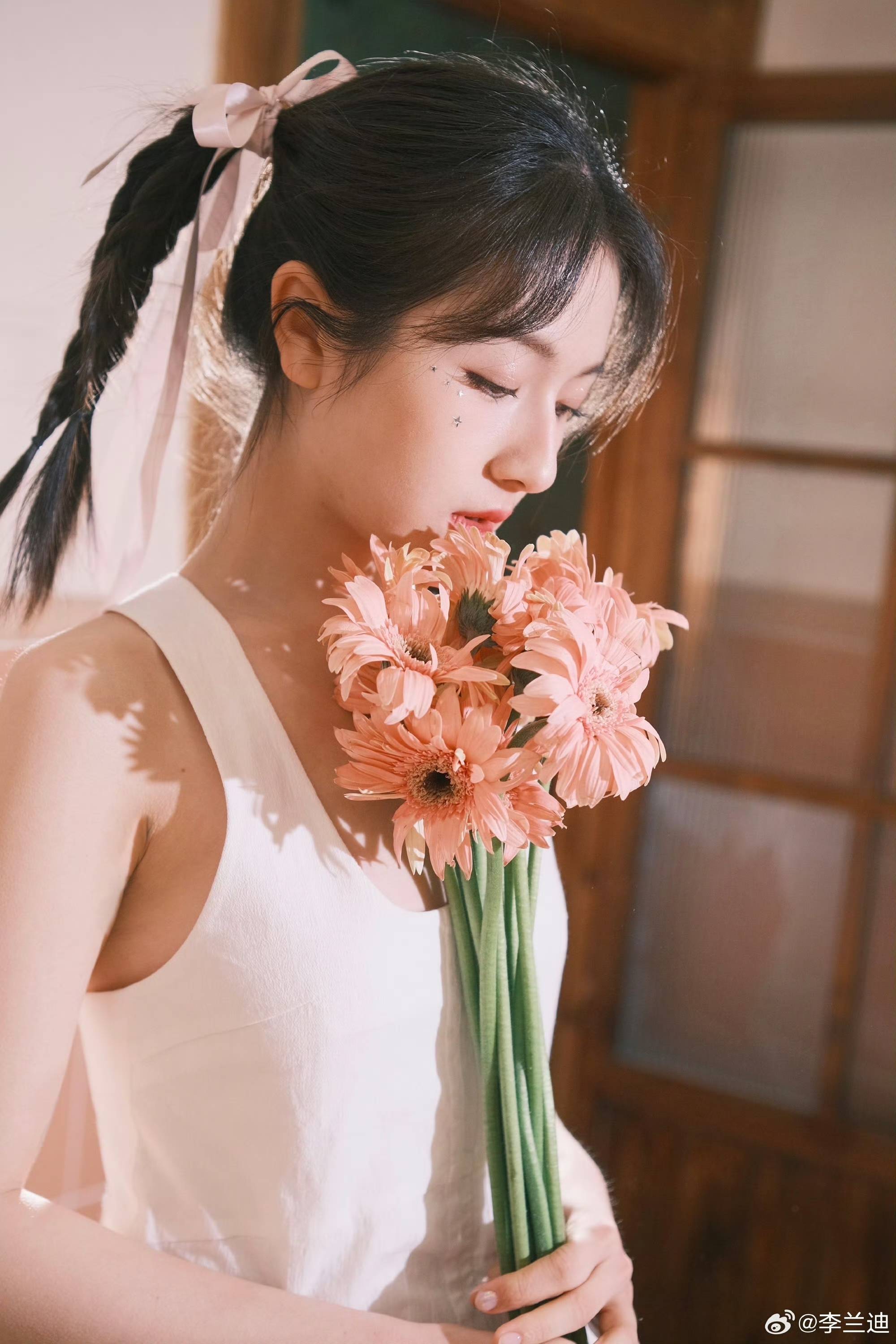 李兰迪春日写真火了!穿花裙扎双辫,这少女感绝了!